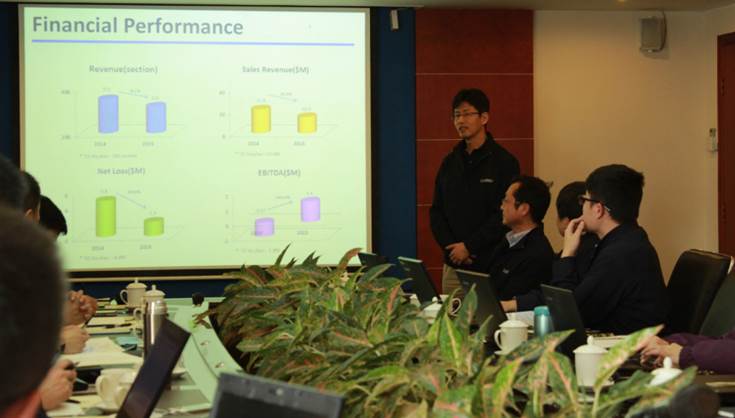 圖為:管理本部 金貞洙 本部長(zhǎng)(右四)匯報(bào)2015年度公司財(cái)務(wù)收支情況