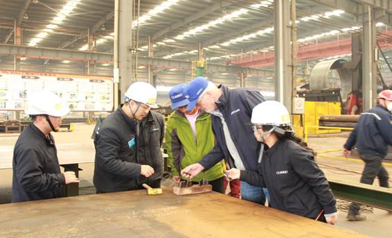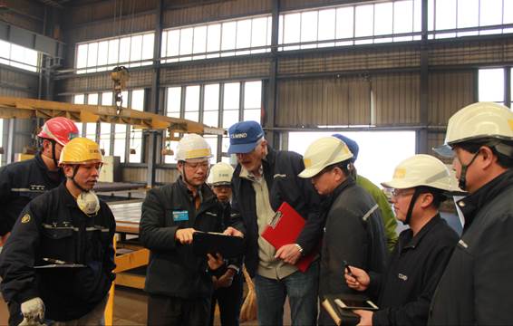 2016年3月23日至24日,來自Senvion的 Uwe Meesenburg和Xiaohan Wang兩人審核小組對我公司進行了為期兩天的管理體系審核。此次審核覆蓋范圍涉及到 公司認證資質(zhì)、質(zhì)量計劃及體系運作、設備及生產(chǎn)儲運能力等多個方面。審核于3月24日順利結束。審核小組對我公司在審核涉及到的各個方面表現(xiàn)都非常滿意,其中印象最為深刻的就是 公司所有員工展現(xiàn)出的精神面貌與干勁。 審核組長Uwe Meesenburg坦言,以我目前的組織和在生產(chǎn)風力塔架方面的豐富經(jīng)驗,他對我公司能夠成功完成Senvion交付的訂單非常有信心。 圖為:劉容銑總經(jīng)理(左二)向Uwe Meesenburg(右三)介紹鋼印號移植流程圖為:Uwe Meesenburg(左五)在黑塔車間查看產(chǎn)品檢驗記錄圖為:Uwe Meesenburg(左二)與劉容銑總經(jīng)理(右一)就焊接工藝交換意見