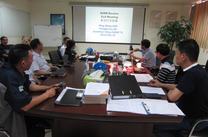 最終審核,聯(lián)檢組由ASME官方派出的聯(lián)檢組長Jonathan Chen、勞氏方面的 授