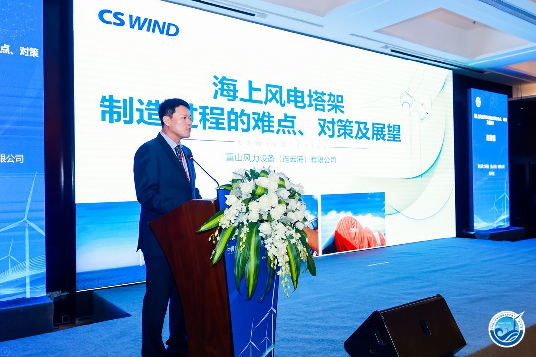 2021年10月15日,第三屆中國海上風(fēng)電支撐結(jié)構(gòu)設(shè)計施工研討會在西安舉行。趙燮根趙總帶領(lǐng)公司領(lǐng)導(dǎo)班參加,并在會上發(fā)言。闡述了公司對海上風(fēng)電塔架制造過程的難點、對策及展望。