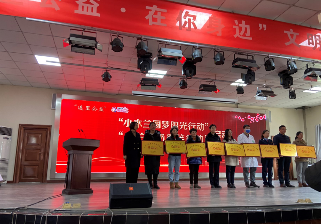 ??h50名貧困兒童捐贈10萬元。活動現(xiàn)場為11家“連里活動”巾幗志愿者陽光行動志愿者